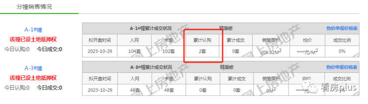 10月底开盘的禧樾府目前仅上传了2套认购数据。