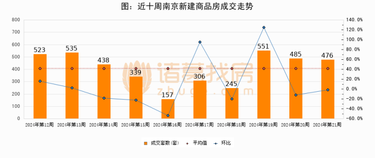 进入2024年第21周(05月20日-05月26日),南京新建商品房成交476套,较上周减少9套,环比下降1.9%