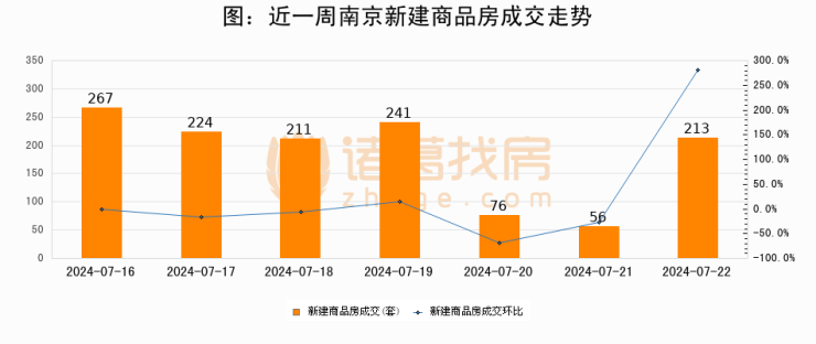 【南京成交日报】07月22日新房成交213套、二手房431套;涨价房源23套