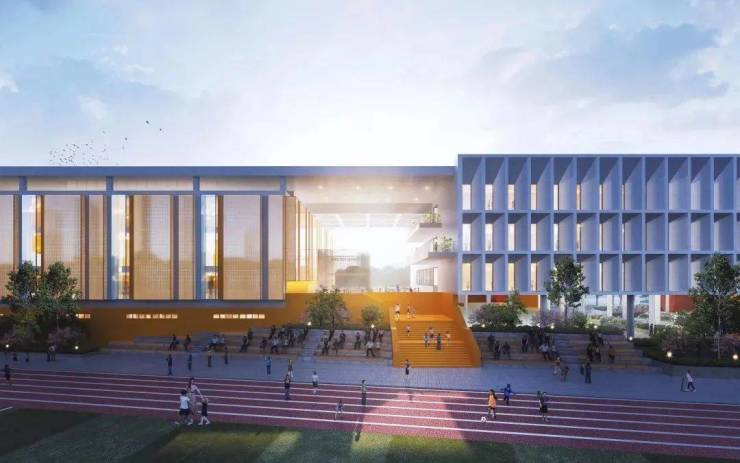 招标公告信息显示:总建筑面积约8.2万方,拟建成18轨54班初级中学。