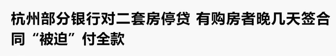 而杭州从今年5月下旬开始,从利率到放款周期,多家银行就已经开始收紧放贷了!有网友爆料,因为晚了几天签合同,被迫付了全款,而原因就是因为自己原本合作的银行突然说停贷了。