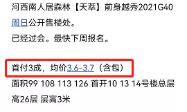 人居森林的两盘毛坯限价都是3万3,以至于两个盘一开始的放风价都高达4万/㎡,但之后随着市场的下调,放风价也逐渐降到了3万8。上个月底,铂玥江南率先打了头阵,销许均价在3万5左右,外加升级装修包3600元/㎡,首付5成。