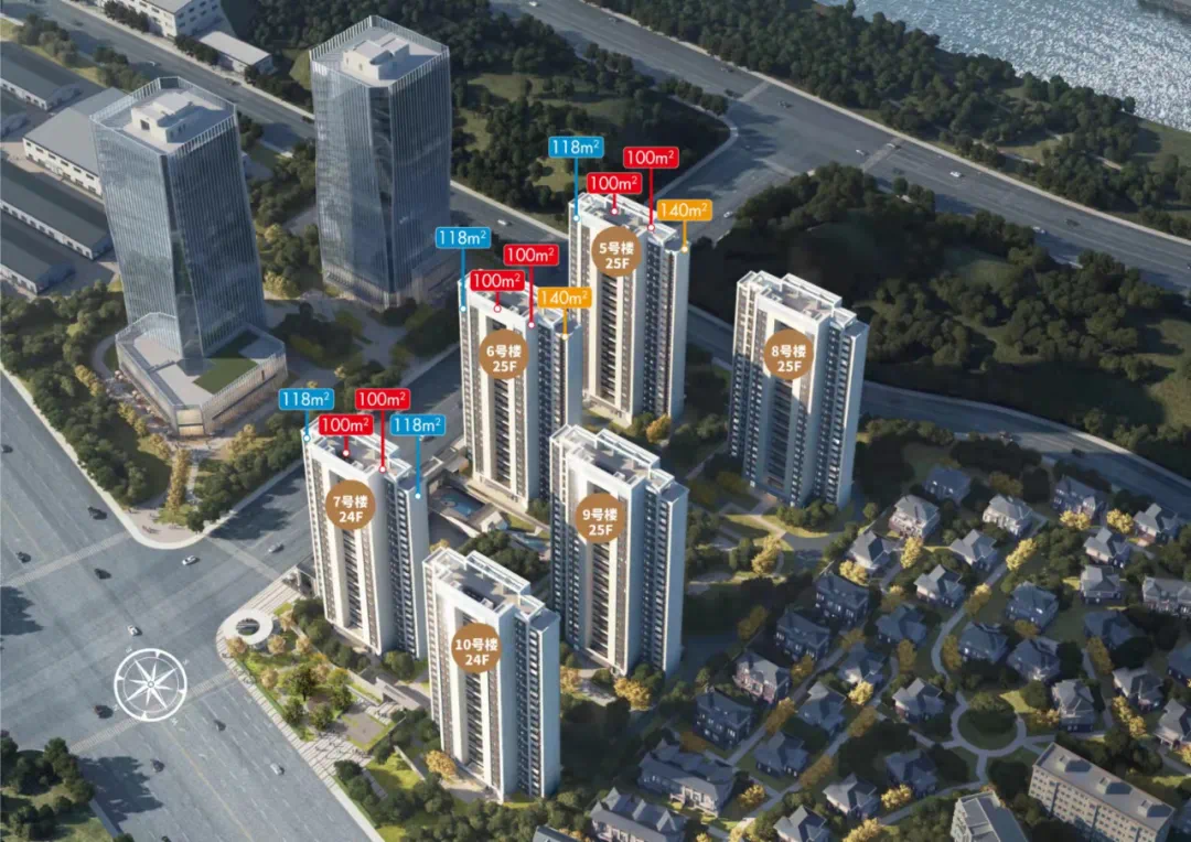 项目规划建设6栋24-25F的高层住宅、4栋商业以及相关配套,毛坯限价38500元/㎡,户型面积约100㎡、118㎡、142㎡。