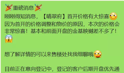 但从另一个方面来说,放风价本来也是开发商实探市场反应的一个手法,先放出较高的放风价,再以稍低一些的价格开盘,买房人自然会产生一种“便宜了”的感觉,对项目去化是有利的。