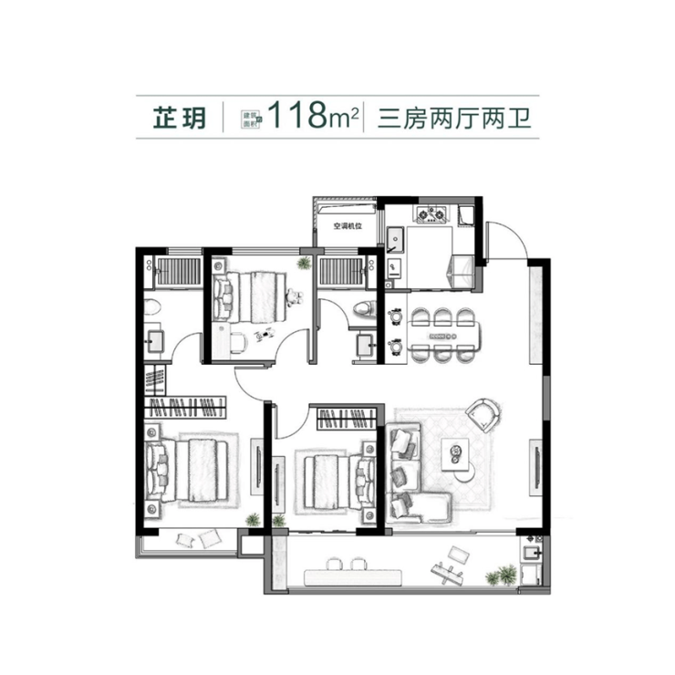 建面约118㎡三房两厅两卫,开间约10.8米,三开间朝南,约7.4米开间全封闭交付阳台。主卧套房设计,带步入式衣帽间和独立卫生间,恰到好处的改善户型,赋写居住之悦。