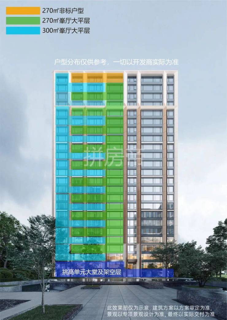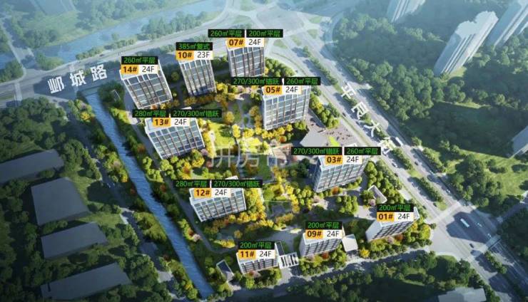 1、项目共打造10栋23-24层住宅,共432套房,所有楼栋首层全架空,主力户型建面约200-385㎡,其中270㎡和300㎡的是挑空户型,385㎡的是复式户型。