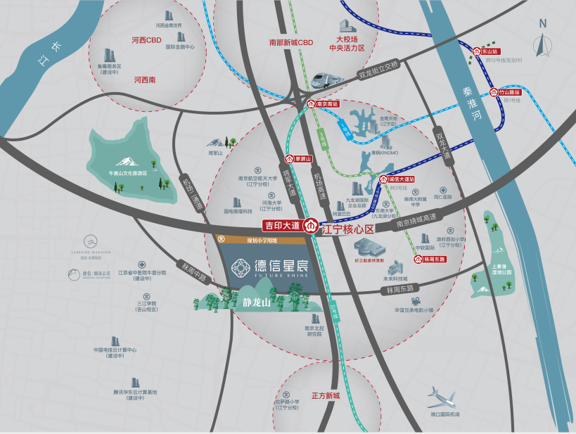九龙湖南地处九龙湖南部,享受九龙湖、上秦淮的利好辐射,作为续力上秦淮的新板块,其潜力无限,加上这些年来,板块内的规划、产业支撑不断发展,城市生活配套也在不断落实。