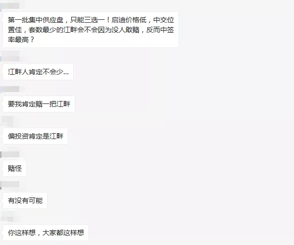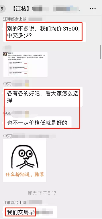 豪宅尚且如此,三盘对垒的核心区压力就更大了,就在昨天,我们的江北核心区买房群里,置业顾问之间的火药味已经很浓了,抢客大战已然开始了!有不少网友预测,本次核心区单盘报名人数起码减半!