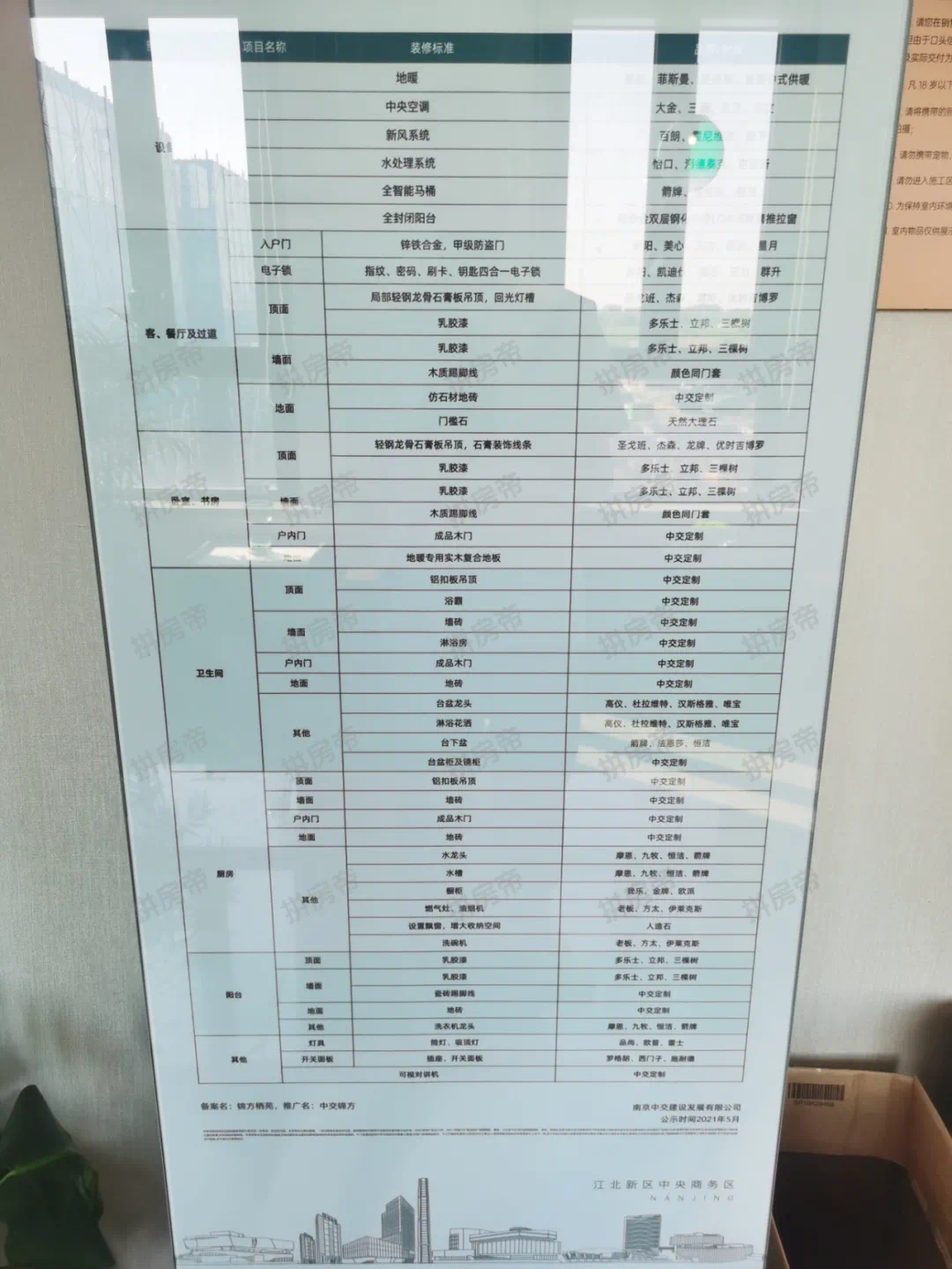 项目也没有精装升级包,中央空调地暖新风三大件齐全,地暖是德国博世、威能或是菲斯曼,新风是美国百朗、兰舍等,中央空调是海信、美的、海尔。