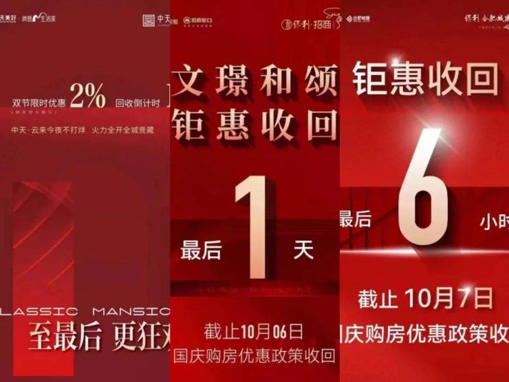 东山的中天云来双节限时优惠2%回收倒计时;软件谷凤起云台10月7日国庆钜惠全线收回;大校场保利招商文璟和颂截止10月6日国庆购房优惠政策收回......