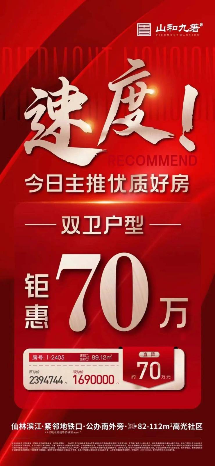 栖霞山的山和九著,一套特价房直降70万,力度生猛