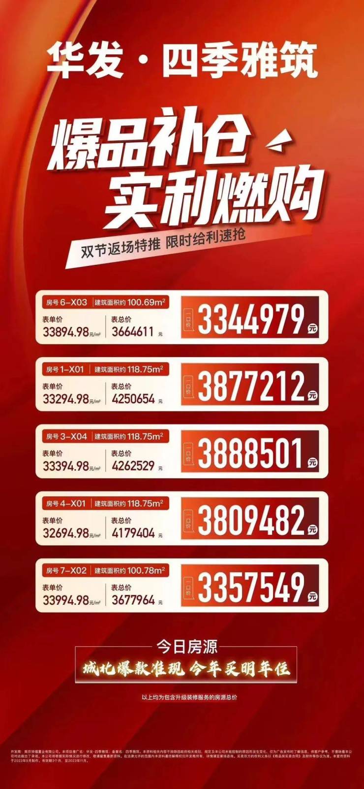 比如燕子矶热盘华发·四季雅筑,有几套特价房直降30多万