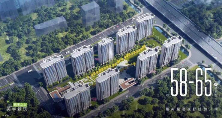 项目9栋小高层呈现“前4后5”的错开式布局,楼间距约58m-65m,远大于约54m楼高,最大比例达到1.2倍,最大程度地保障楼栋通风与采光,让每栋楼的业主都拥有绝佳的观景视野。