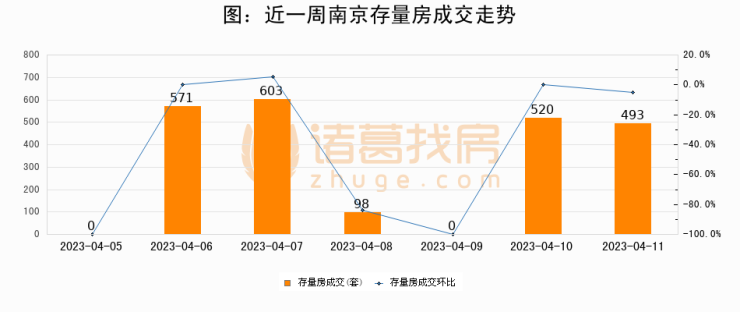 从存量房来看,2023年04月11日南京存量房单日成交493套,比昨日减少27套,环比下降5.2%。从近一周存量房成交来看,南京存量房日均成交套数为326套,04月11日单日成交493套,高于近一周平均水平51.2%。