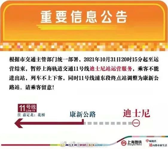 虽然地铁封站了,但上海方面仍旧努力保障游客的出行。按照上海市交通主管部门统一部署,10月31日晚8时15分起,上海轨道交通11号线迪士尼站停止运营,同时安排220辆临时接驳公交车至迪士尼站点转送迪士尼游客。