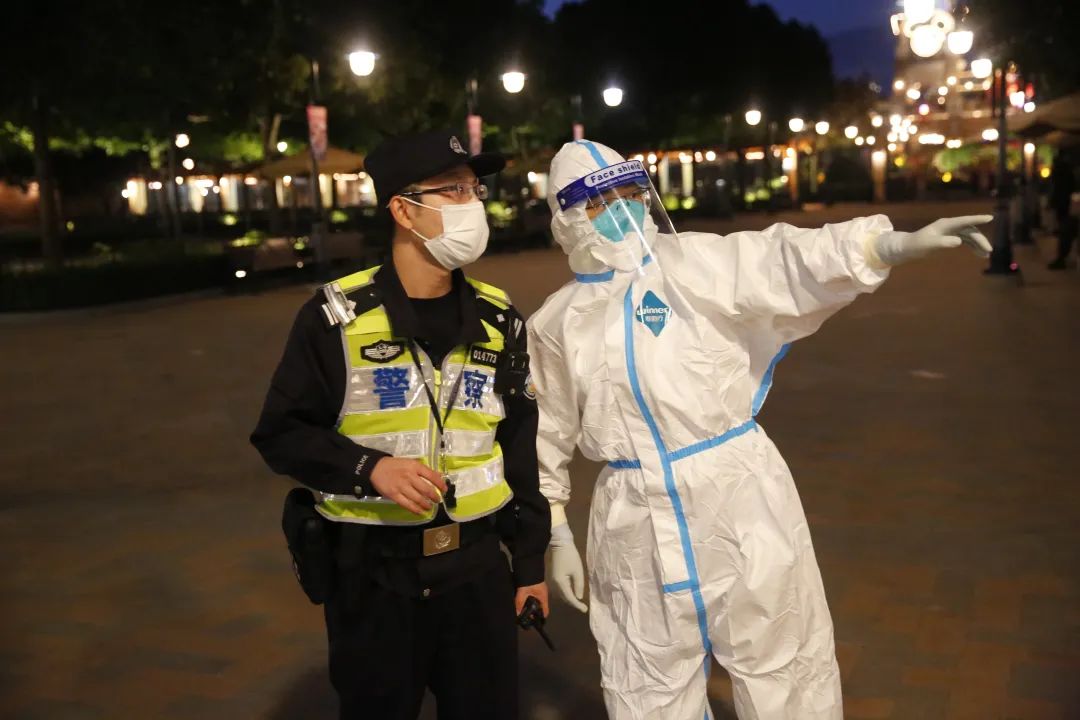 大批疾控工作者和数百民警迅速赶到现场,重新布设岗位,引导游客有序进行核酸检测并离开园区。几乎同一时间,在度假区5个主要出入口都布置了民警哨卡,对不了解情况的车辆进行劝返。