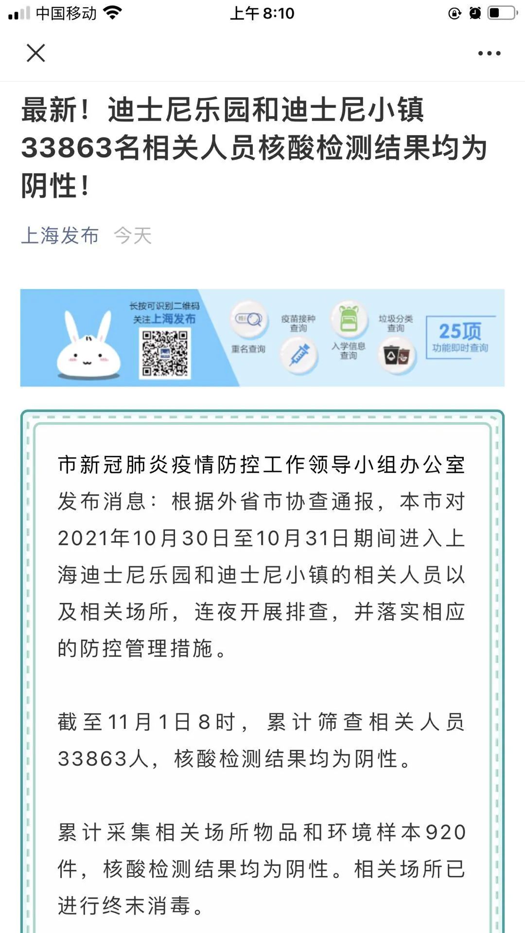 刚刚通报!上海迪士尼33863人核酸均为阴性