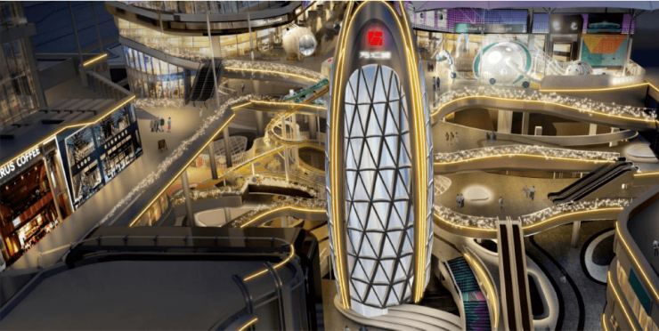 目前所有建筑的主体结构已经完工,预计12月底,酒店和部分商业将开业运营。