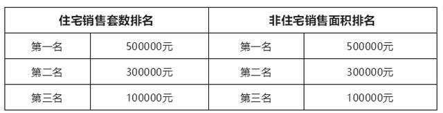 在让利惠民的原则下,房地产企业制定实施新春优惠促销方案(不低于政府政策补贴),并在销售中心公示,区政府对活动期间住宅销售套数超过20套以上及非住宅销售面积超过2000平方米以上的房地产开发企业,根据网签备案数据进行评定排名,并按排名情况给予以下奖励: