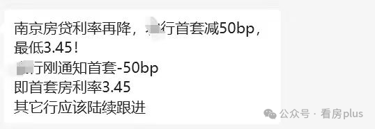 据网传消息,南京房贷利率再降!农行接到通知,首套房贷利率减50bp(在LPR的基础上),最低3.45%!其他银行应该陆续跟进。