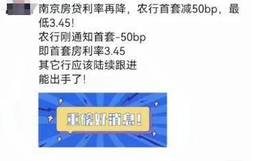 就在昨晚,南京楼市突然传出重磅消息:农行首套房利率可以减50bp,降至3.45%!