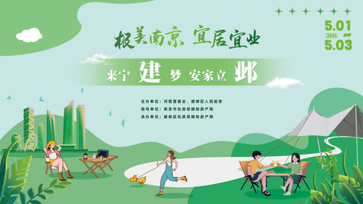 5月1日-5月5日,在象山湖公园和水墨大埝,组织多家房产企业开展“宜居浦口”宣传推广活动,促进供需对接,助力市民、游客刚性及改善性住房需求有效释放。