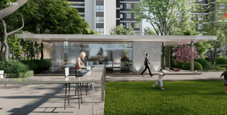 有点惊艳的是,晴樾府将正对泳池的5号楼一层作为架空层,并在其间设计了健身设施、茶室、童玩室等,这会在很大程度上提升泳池的互动性。