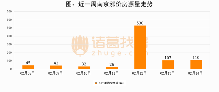 根据诸葛找房数据显示,南京24小时涨价房源量为110套,较02月13日增加3套,环比上涨2.8%。与此同时,涨价房源占比小幅扩大,业主信心有所提升。