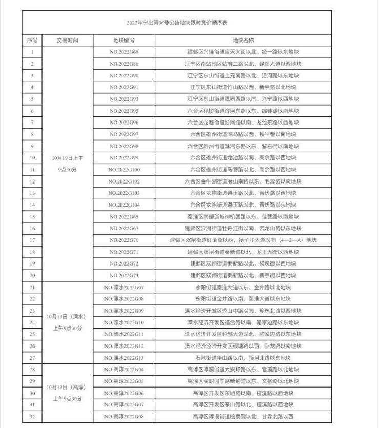 10月19日网上限时竞价32幅地块,具体地块及交易顺序见附表。